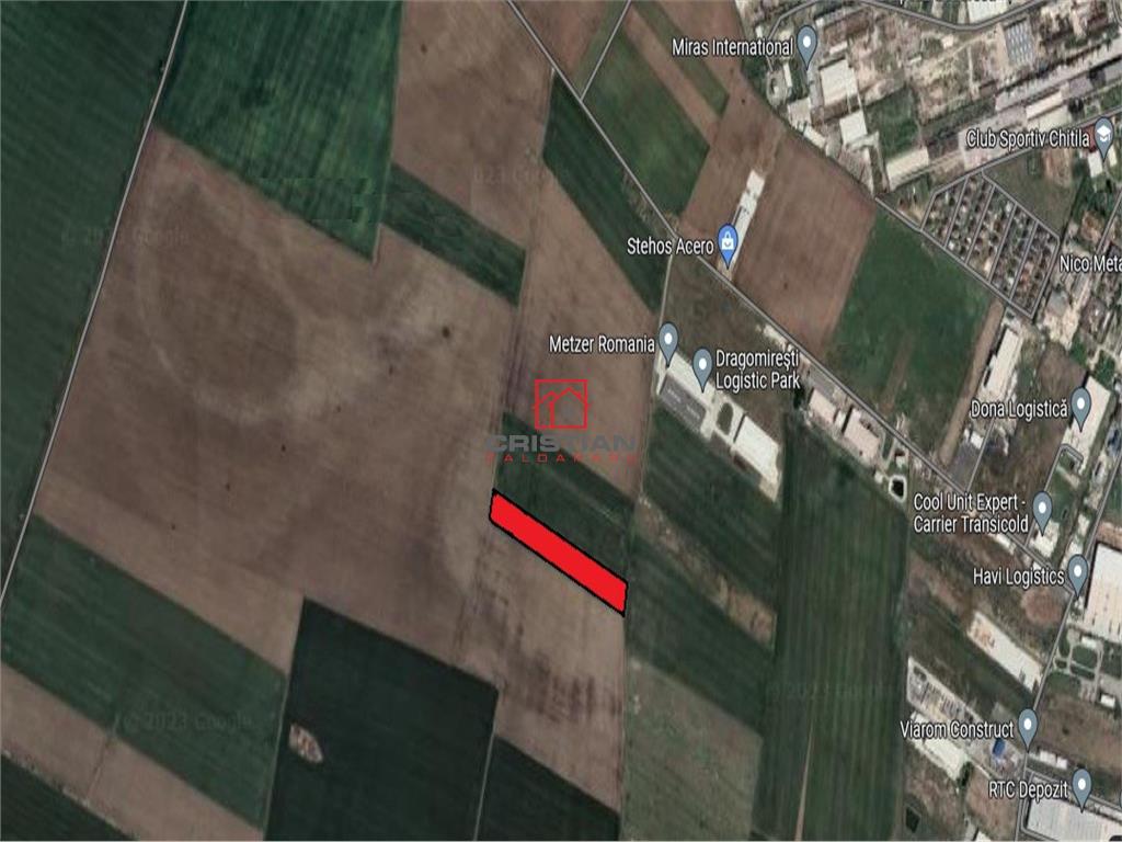 Vanzare teren extravilan Chitila - Dragomiresti Vale - strada Padurii, Ilfov. Proprietate compusa din teren suprafata 20.000mp, deschidere 53 - 50ml la 2 drumuri de exploatare, pana la 400ml de teren drumul este asfaltat. Terenul se preteaza pentru construire cladire cu destinatia: depozitare, industriala. Pret - 260.000euro