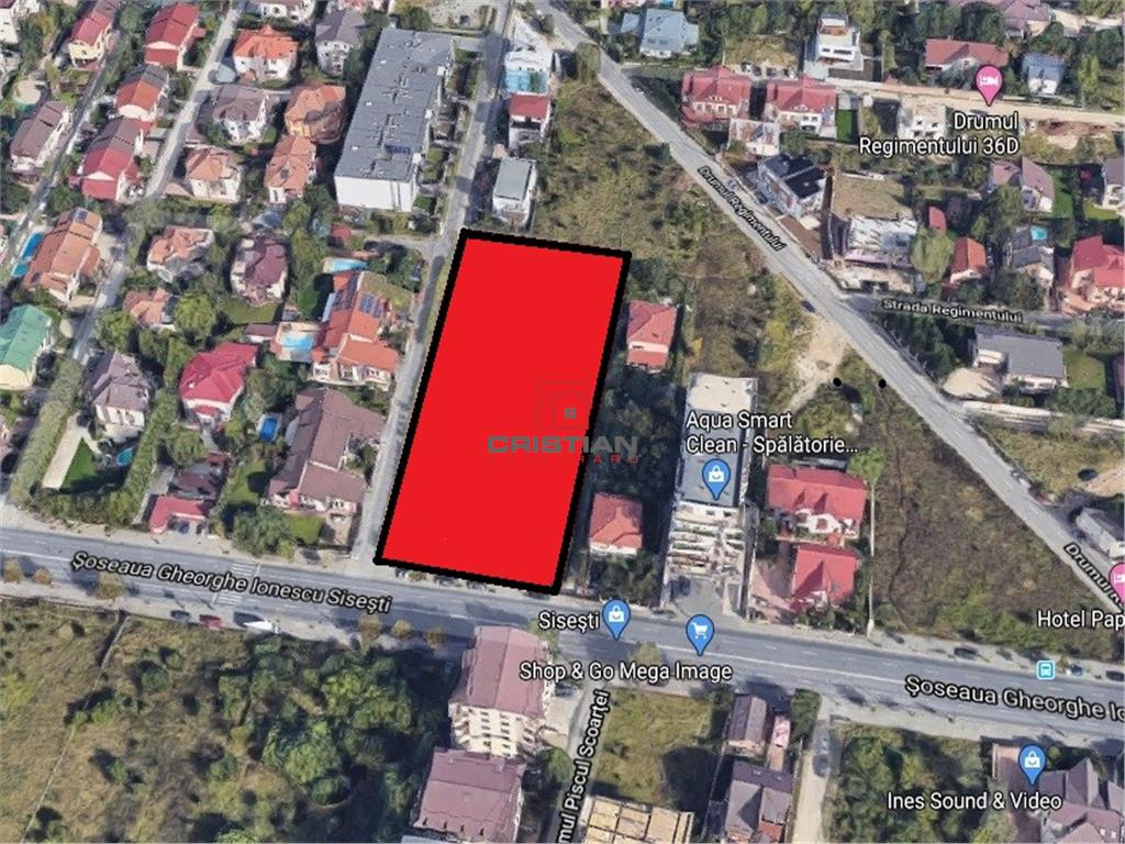 Vanzare teren Sisesti - Regimentului, Bucuresti. Proprietate compusa din teren suprafata 4.485mp, deschidere dubla 142ml. Regim de inaltime, conform PUZ, S+P+4+5, cut 2.2, pot 50%. Terenul se preteaza pentru construire cladire cu destinatie: rezidentiala, office. Pret - 1.480.000euro+TVA